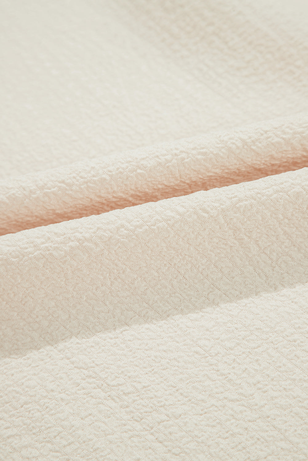 Beige Textured Bow Knot Frilled Butterfly Sleeve Blouse