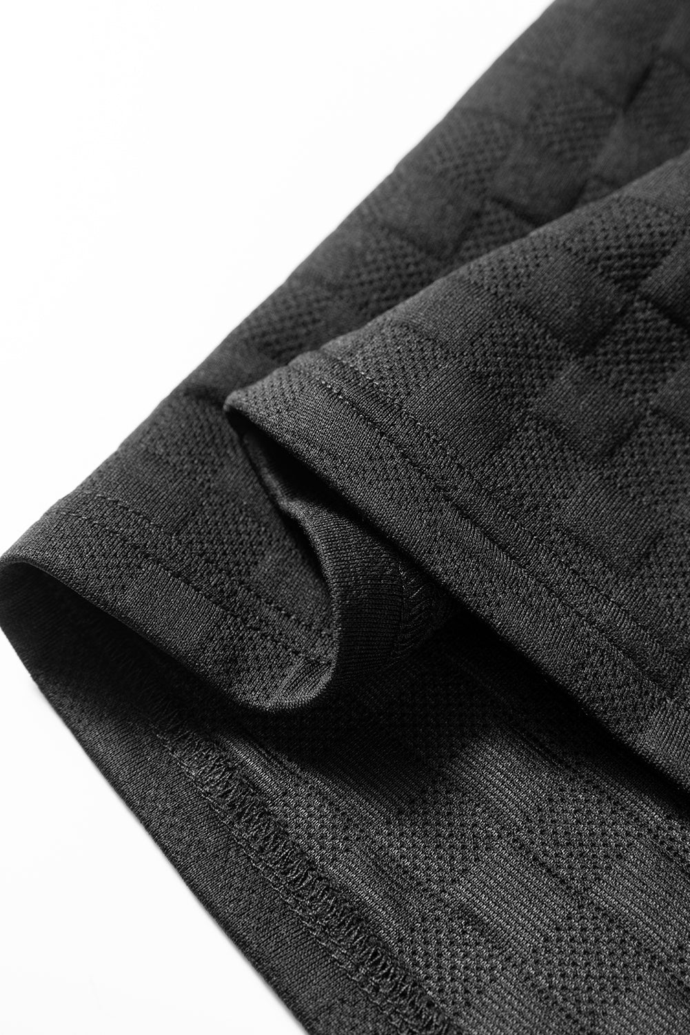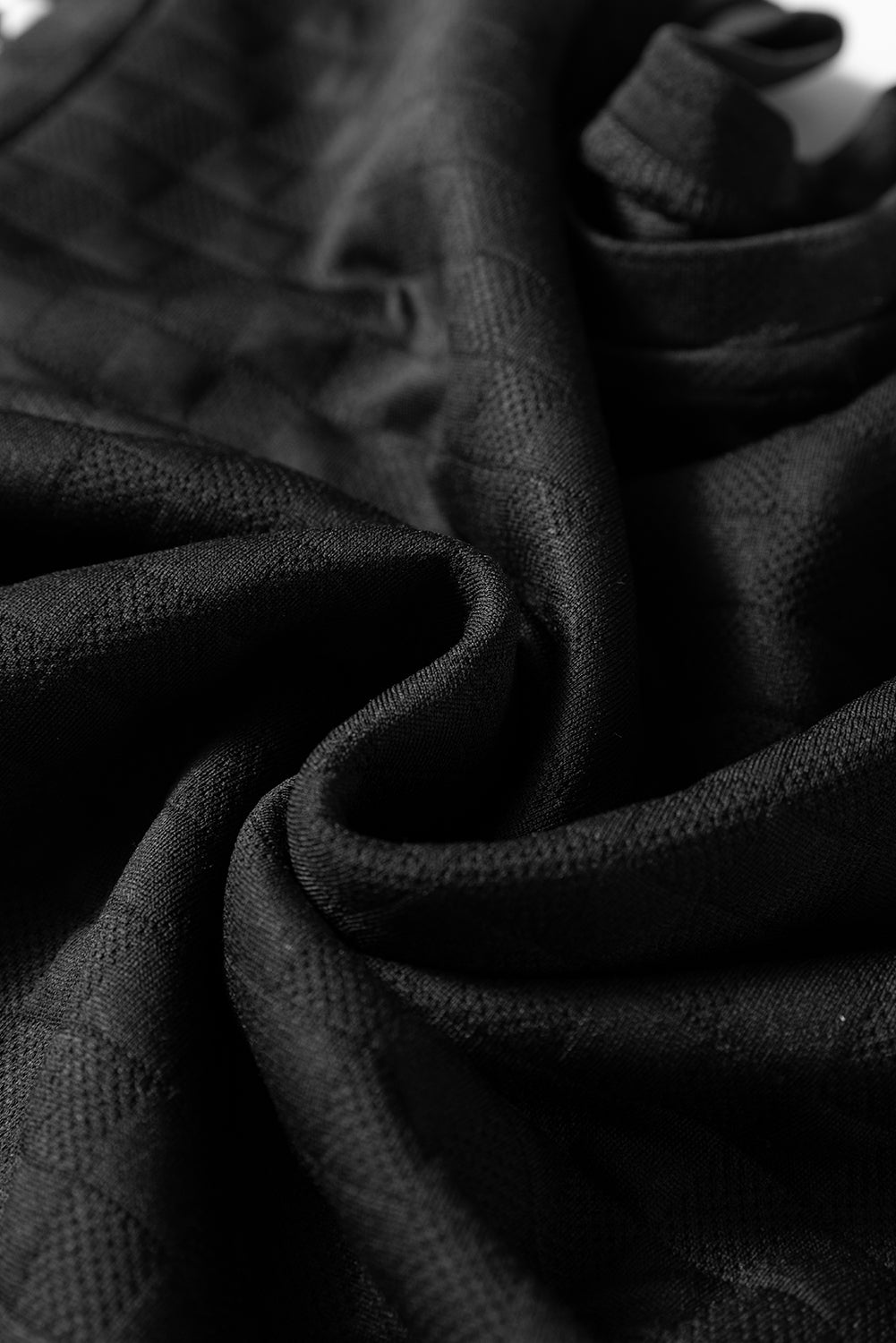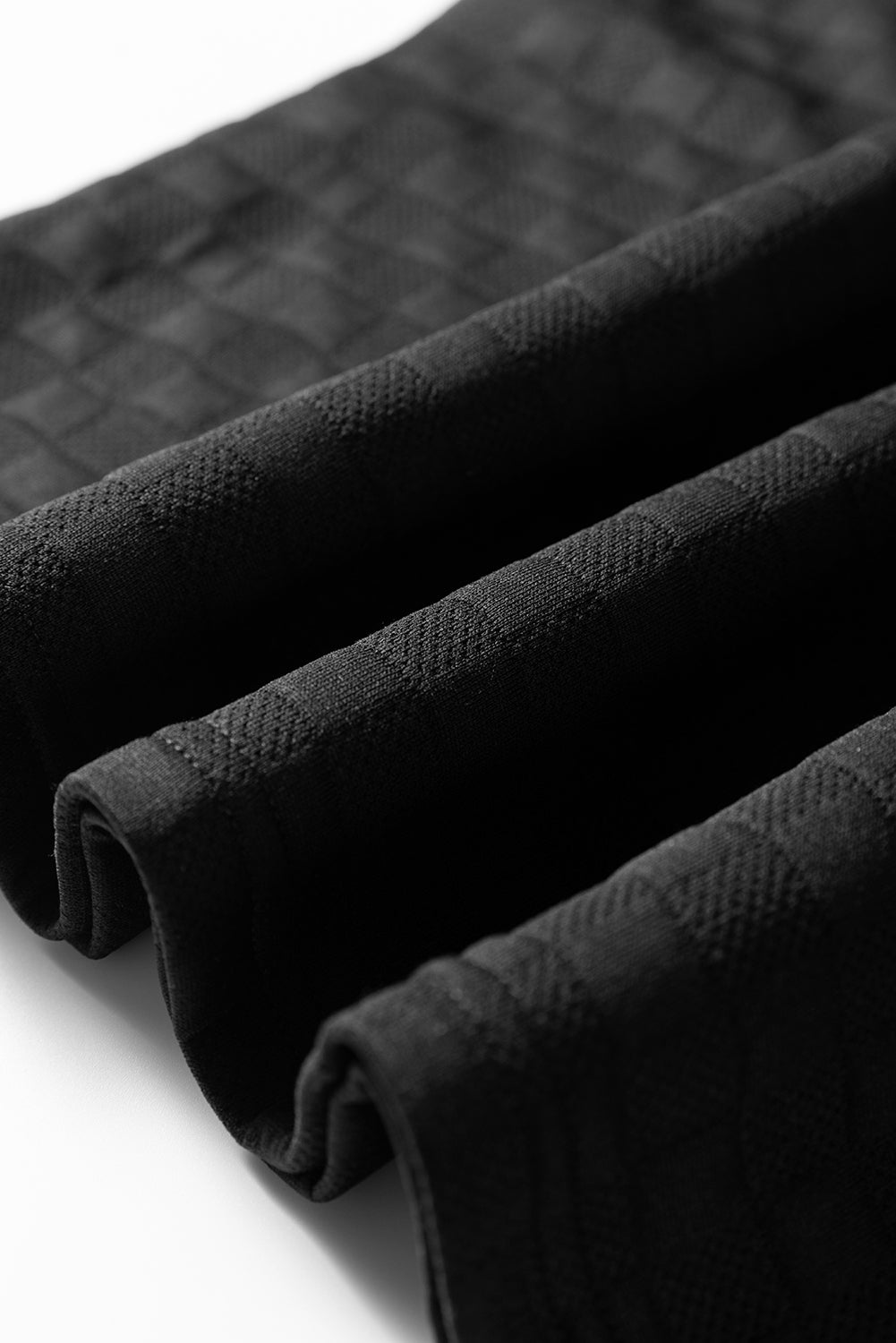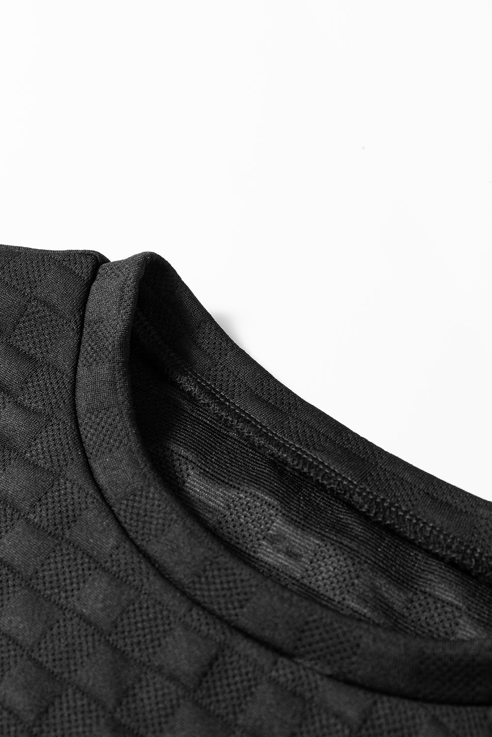Black Plaid Textured Contrast Checkered Patchwork Long Sleeve Top