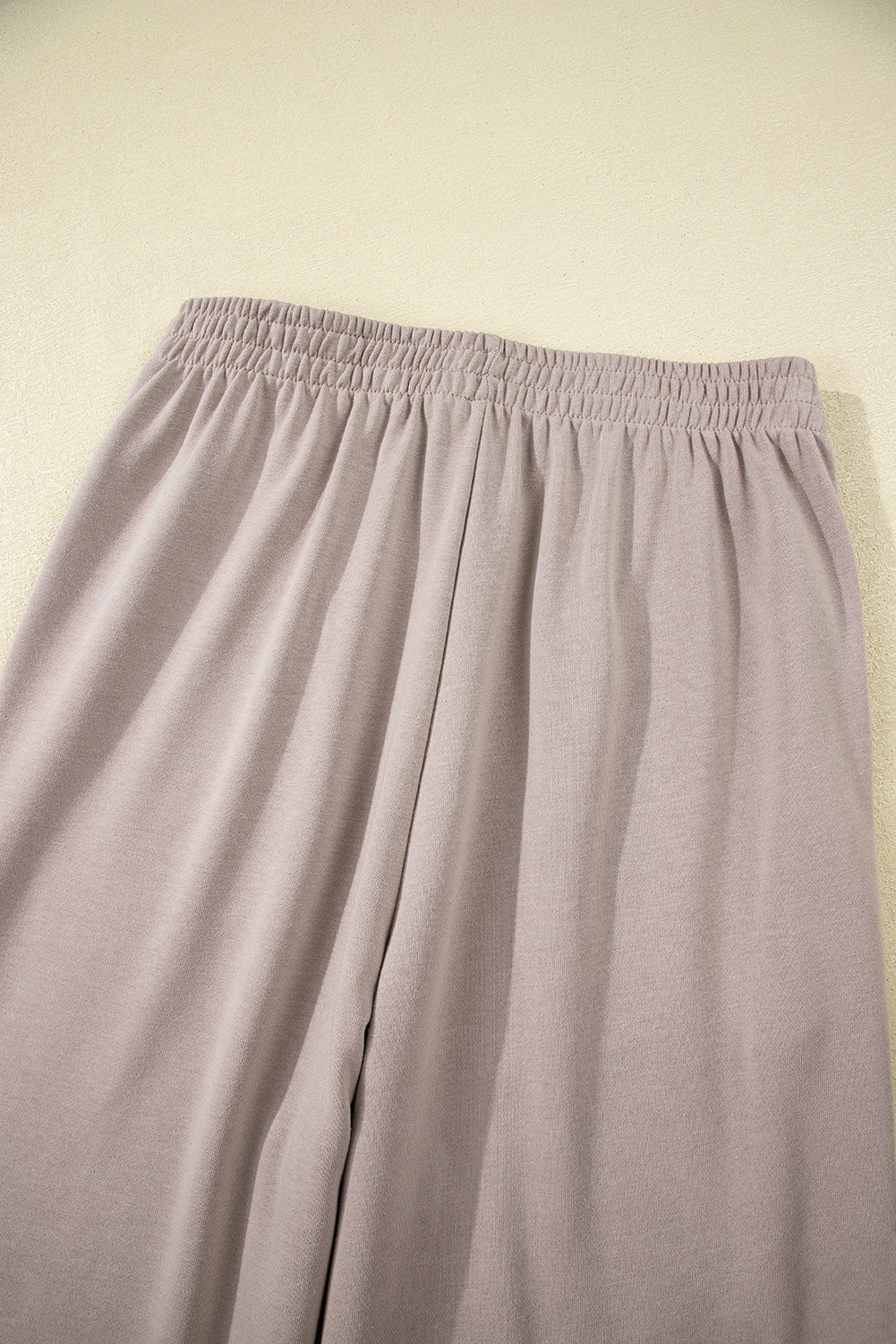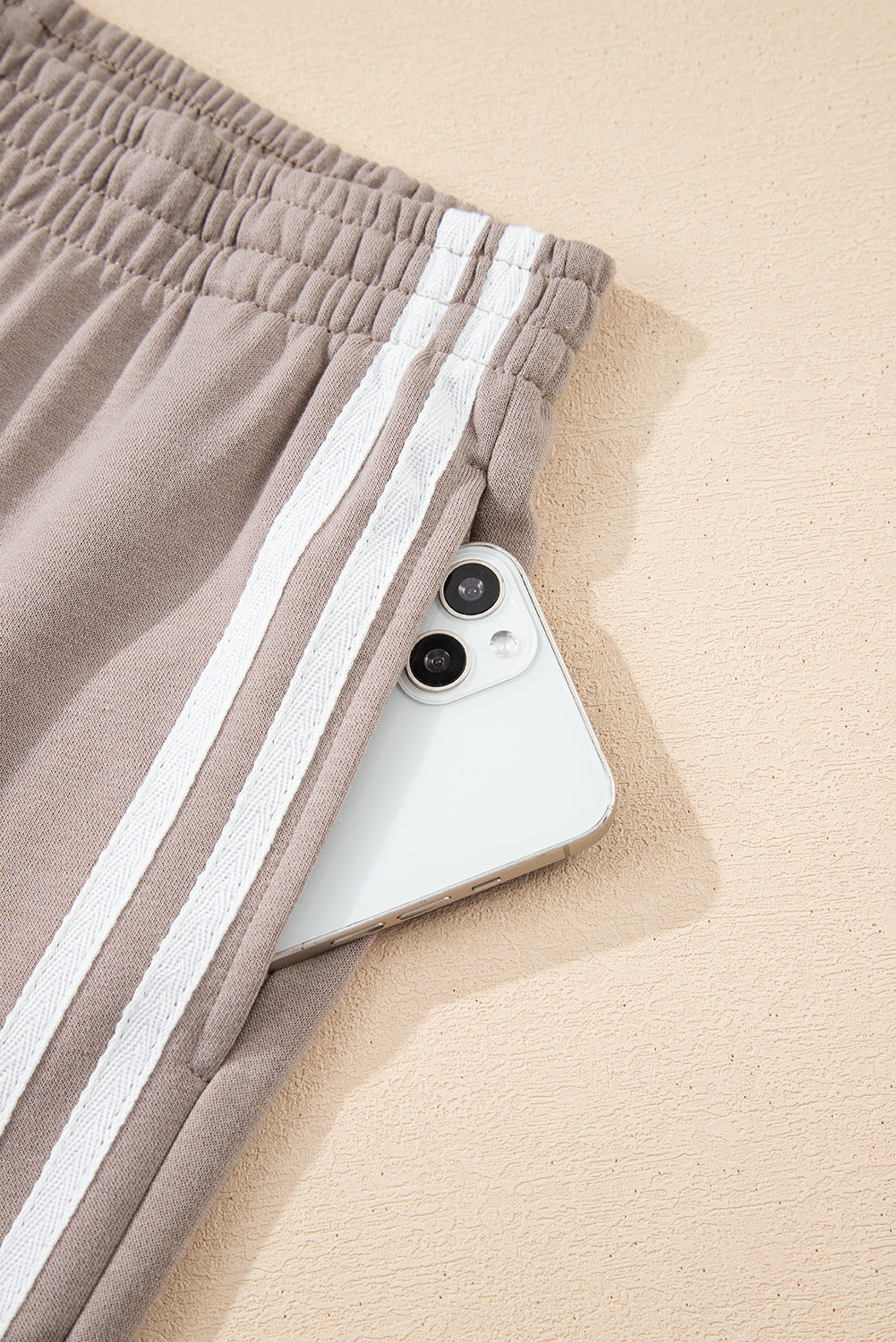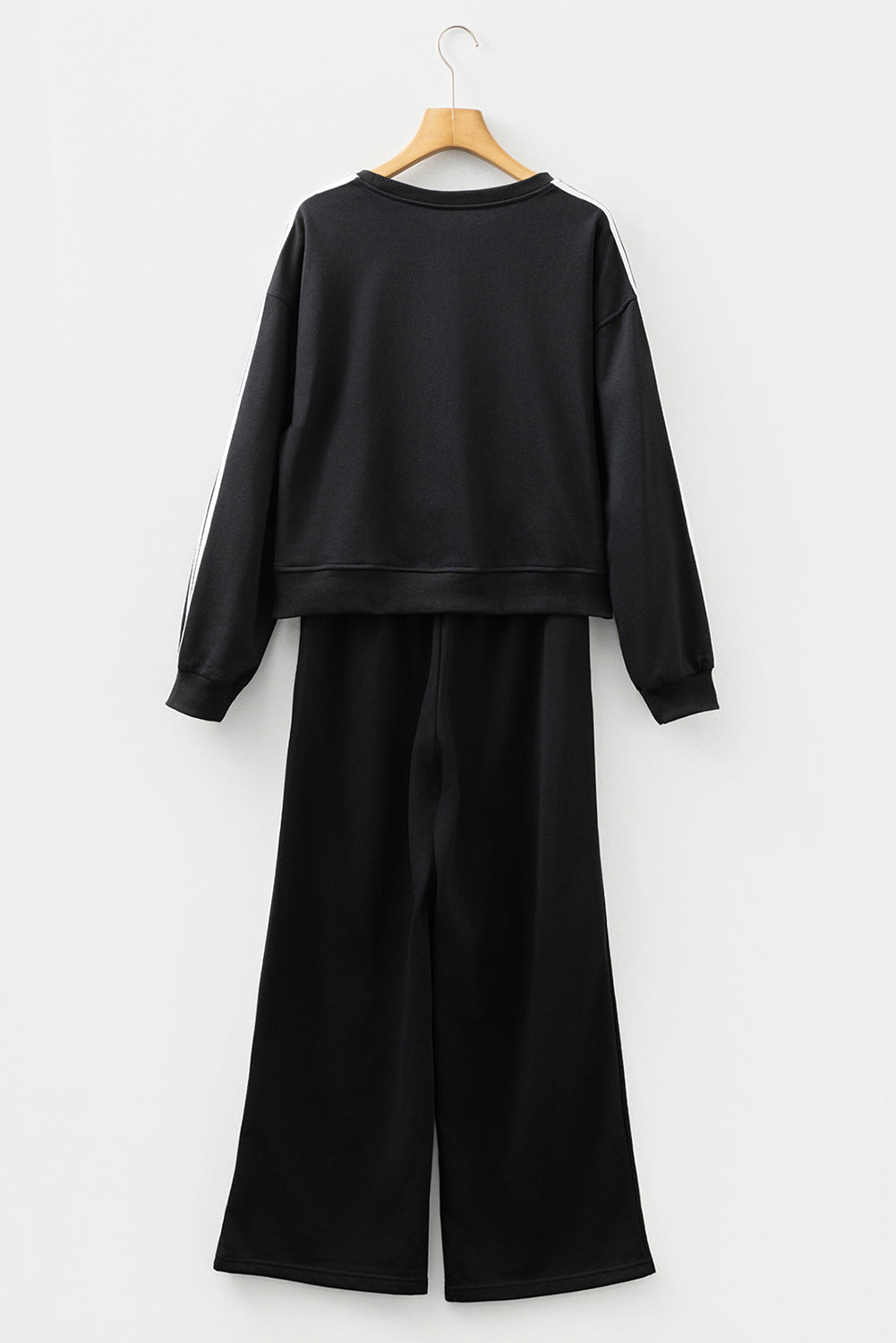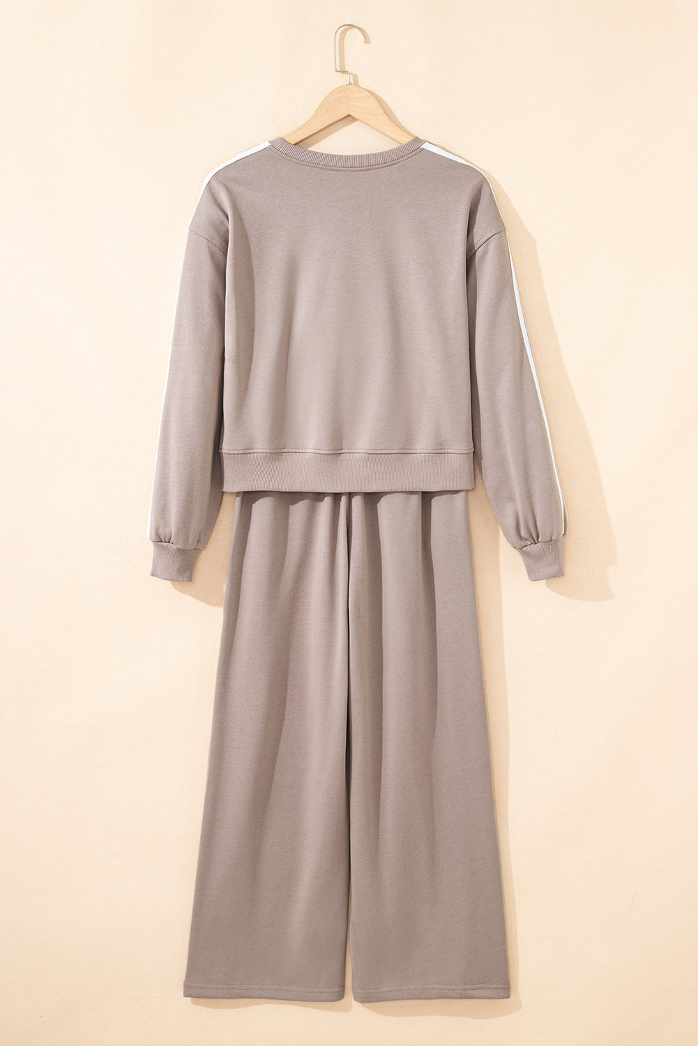 Gray Morn Varsity Striped Detail Crewneck Pullover Elastic Sweatpants 2pcs Outfit