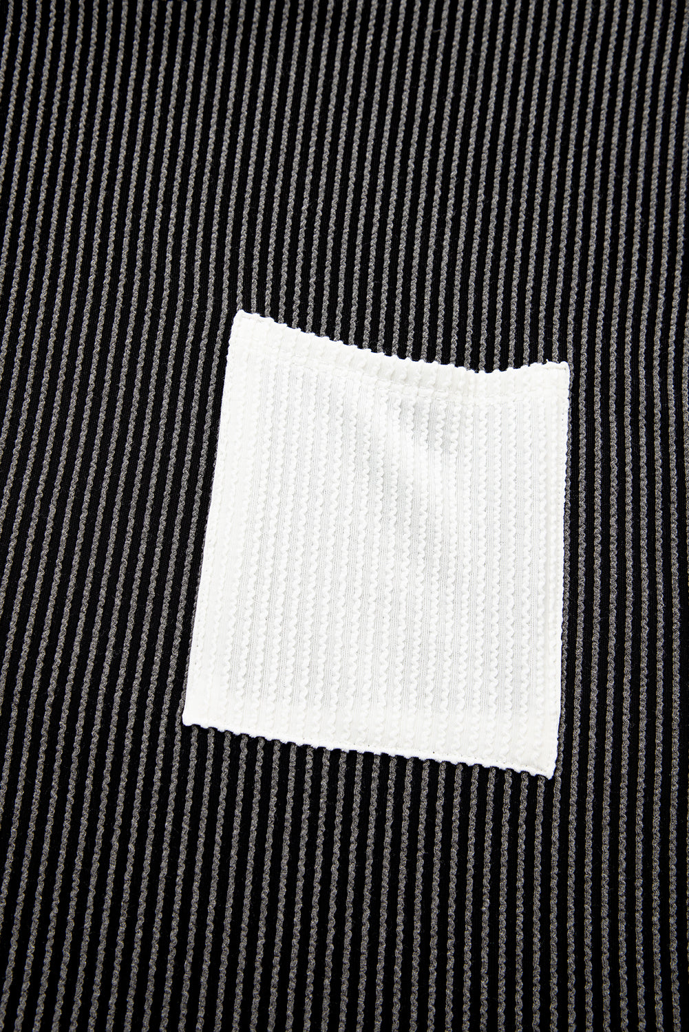 Pink Corded Knit Color Block Pocketed Crew Neck T Shirt
