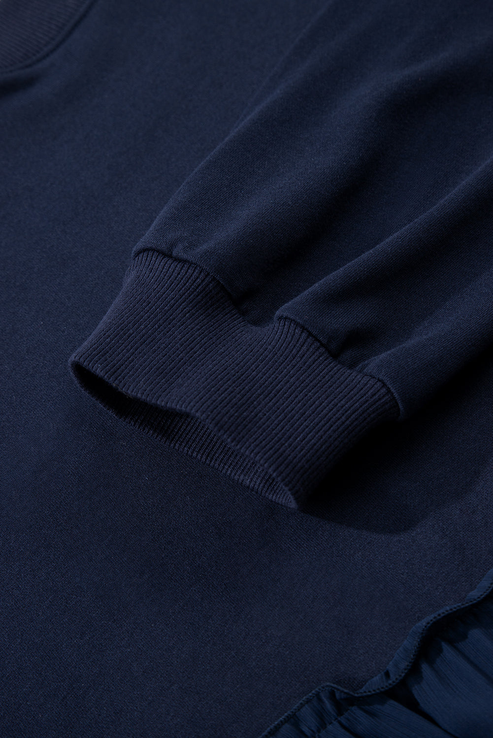 Ribbed knit fabric keeps this crew neck pullover comfy all day.